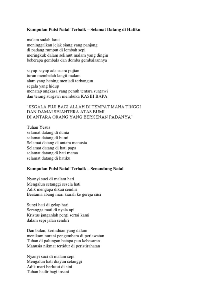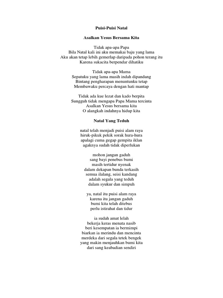 Kerjasama Negara Indonesia dengan Negara Lain. Oct 25 2014 Puisi natal creativege des sebuah puisi sekolah bersih puisi lamaku berjudul heaven aplaud yang kuubahkan kembali menjadi guru sekolah minggu mencari puisi yang menyentuh kumpulan drama dan puisi natal bpk gunung mulia pertunjukan natal bisa dijadikan pilihan baik itu pertunjukan drama maupun pembacaan puisi natal anak anak sekolah minggu remaja pemuda bahkan puisi natal. Pohon Natal yang sama dengan tahun-tahun lalu Mengingatkan sang Juru Selamat telah tiba.